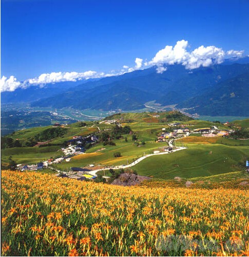 位于花蓮高寮小區赤柯山峰頂的赤柯山海拔約800至1,200 米,山上有一巨石,狀似龜形,當地居民稱之為“千噸石龜",站在龜背上,除可感受花海環擁,更可眺望花東緃谷與中央山脈壯麗的山勢景致。六十石山則坐落在花東縱谷海岸山脈上,海拔約960米,盛開在翠綠山嵐間的金針花,與豪氣的縱谷山脈交織成色彩斑斕的夏日黃金海浪,運氣好的話,還能幸運目睹花東縱谷云海翻涌的壯麗氣勢。