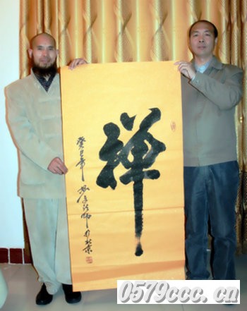 妙文法師向中國地理大師、易經研究專家劉文慶贈送作品《禪》