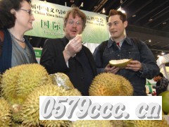 各具特色的臺灣食品讓美國參展客商連聲稱贊,在嘗吃過榴蓮后,這兩位美國客商翹起拇指,直說“OK!”。